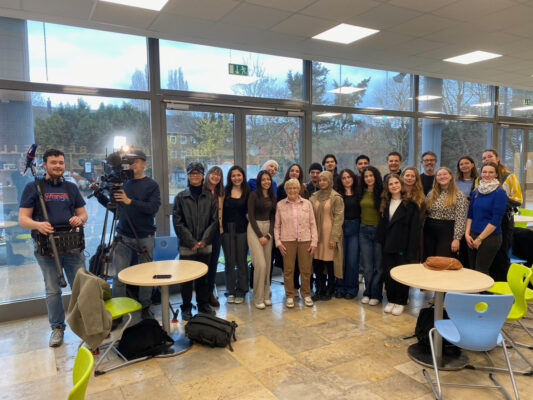 Große Freude: Unser Projekt Hörbar – Stimmen zum Nahostkonflikt wurde mit dem fair@school-Preis 2025 ausgezeichnet! Der fair@school Preis wird vom Cornelsen Verlag in Kooperation mit der Antidiskriminierungsstelle des Bundes vergeben und zeichnet jedes Jahr Projekte aus, die sich aktiv für Vielfalt, Respekt und gegen Diskriminierung im Schulalltag einsetzen. In Berlin nahmen Schüler:innen der EF und Q1 und die Lehrkräfte Mutlu Yolasan, Björn Mertens und Maysun Abu el Haija den Preis stellvertretend entgegen – begleitet von tollen Eindrücken, wie zum Beispiel der sehr wertschätzenden Laudatio von Prof. Dr. Viola Georgi oder bewegenden Gesprächen mit Jurymitgliedern wie Serpil Unvar. Unsere schulische Ausstellung wurde prämiert für ihr starkes Engagement und besonderen Fokus auf Multiperspektivität, Zuhören, Empathie und Dialog. Gerade in emotional aufgeladenen Konflikten braucht es Räume, die Stimmen hörbar, Geschichten sichtbar und Menschlichkeit spürbar machen. Wir freuen uns als Schule sehr über diese Auszeichnung, die auch ein Preis für unseren alltäglichen Einsatz aller am Schulalltag Beteiligten gegen Rassismus, Antisemitismus und jede Form von gruppenbezogener Menschenfeindlichkeit ist. Herzlichen Glückwunsch!